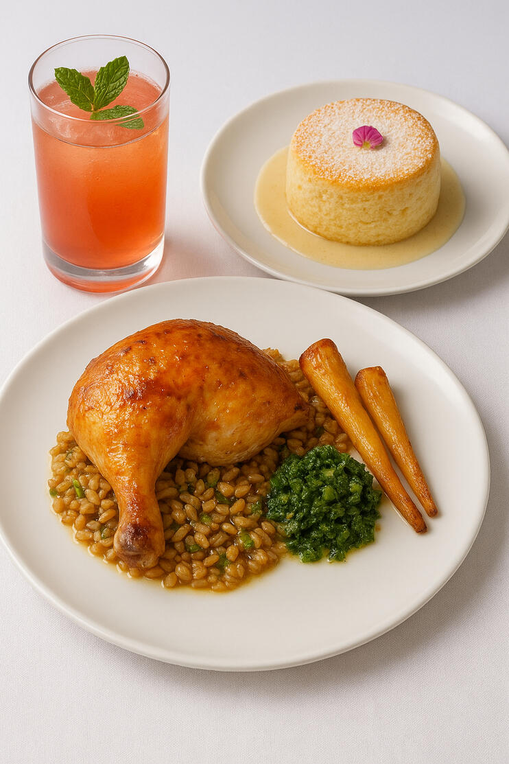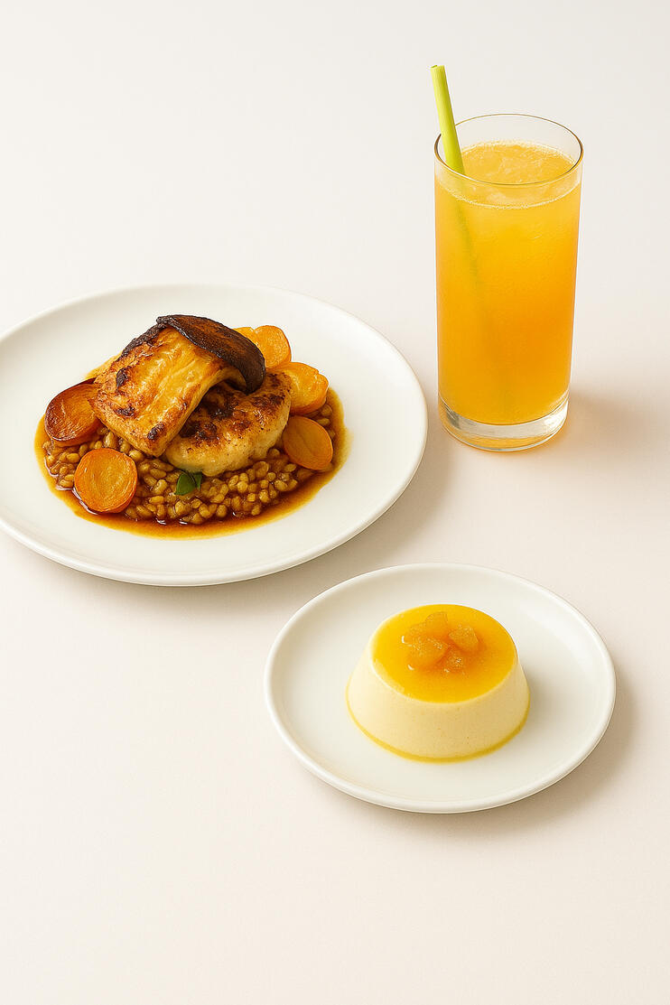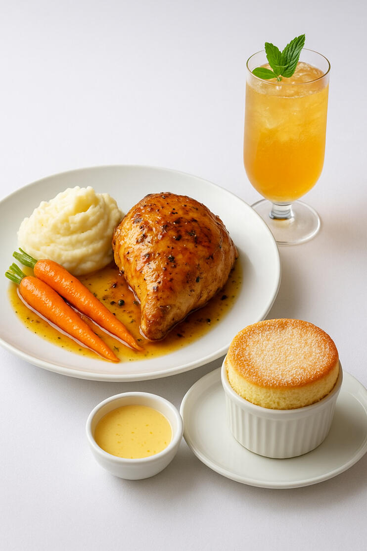 You’ve made an excellent choice, a dish made for quiet moments, the kind where warmth gathers slowly against the cool edges of the day—like a small heart appearing on a windowpane with a single soft breath. Nothing here hurries; each flavor opens gently, steady and calm, inviting you to settle into the comfort it offers. As we near the end of our journey, let this course bring one last bright lift—a final, playful spark before the world grows still again. Take your time, let the warmth meet the cool, and allow this dish to linger with you like a touch of light traced across glass.